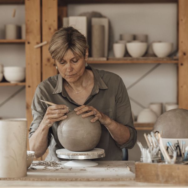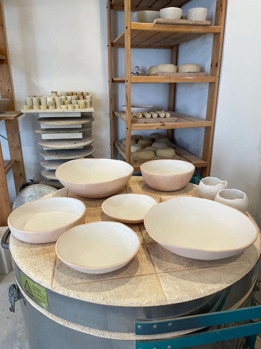 A chaque pièce correspond une technique et des outils spécifiques : Modelage, tournage, travail à la plaque, séchage et émaillage.